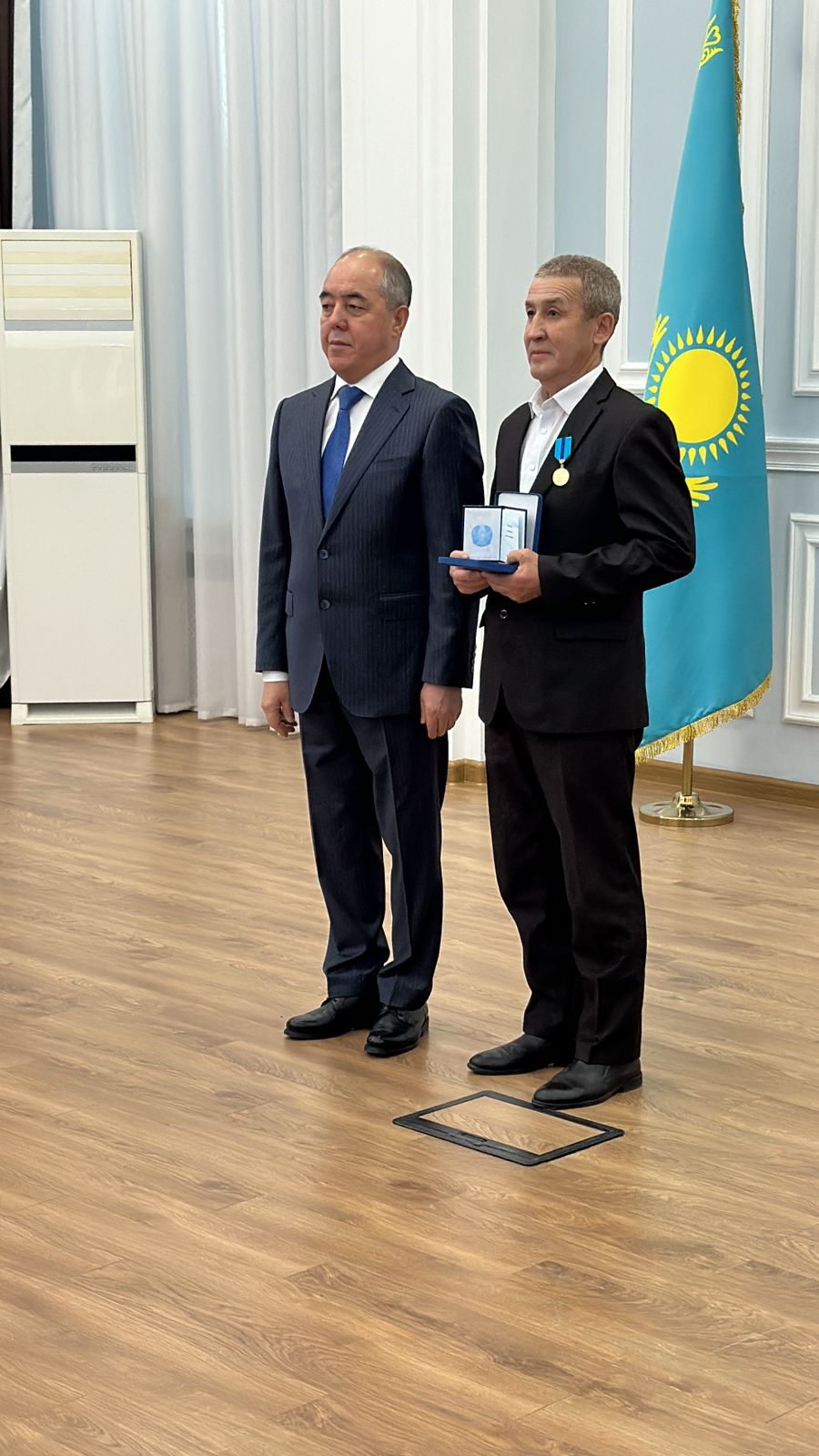 В ЗКО Аким области Турегалиев Нариман Турегалиевич наградил от имени Президента РК Токаева К К наиболее отличивщихся работников разных профессии медалью «Ерен еңбегі үшін».
